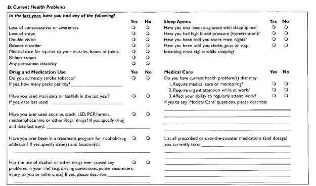 As can be seen from the form, this section, Current Health Problems, commenced with a series of questions that were to be answered in the context of either “currently” or “in the last year”, followed by a segue to three questions posed from an “ever” standpoint. The employer’s placement of the “ever” questions within the Current Health Problems section of the form, and not the following Section C, Past Health Problems, might be construed as curious, but there is nothing vague at all about the particular questions themselves. For purposes of clarity, they are repeated below: